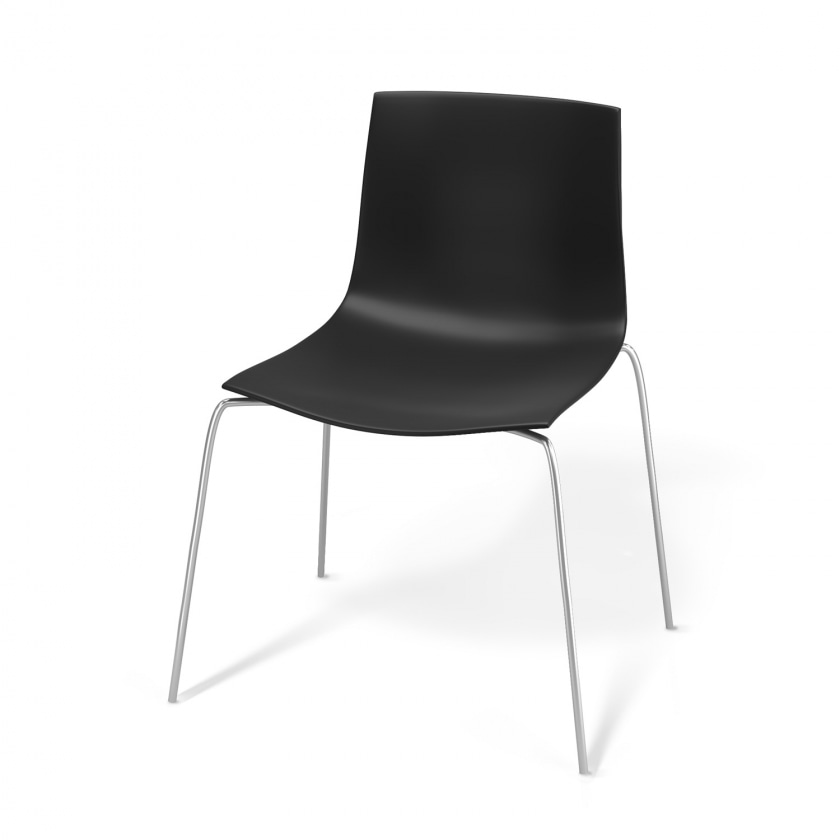 Erhältliche Farben: schwarz und weiß; Gestell: Stahlrohr, verchromt; Sitz/Lehne: Kunststoff.