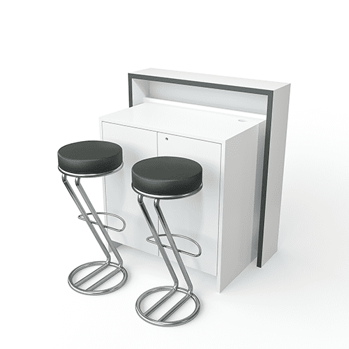 Bestehend aus Infocounter mit Hintergrundbeleuchtung und 2 Barhockern.