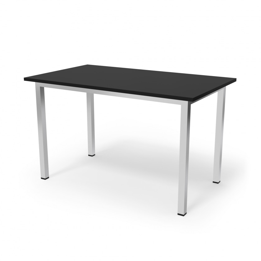 Tischplatte aus beschichteter Spanplatte. Erhältlich in schwarz und weiß. Mit verchromtem Gestell.