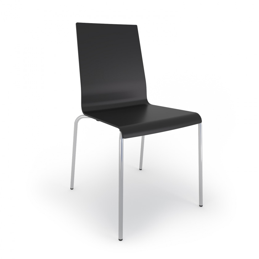 Erhältliche Farben: schwarz und weiß, Gestell: Stahlrohr, verchromt; Sitz/Lehne: Schichtholz, lackiert.